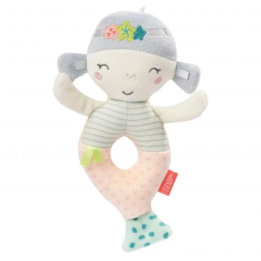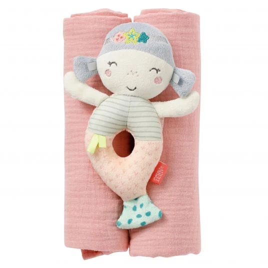 Das süße 3-tlg. Set Greifling & Musselintücher Meerjungfrau von Fehn eignet sich ideal als schöne Geschenkidee für die Baby-Erstausstattung. Mit der niedlichen Meerjungfrauen-Rassel kann der kleine Entdecker seine motorischen Fähigkeiten, seine Wahrnehmung und seine Auge-Hand-Koordination auf spielerische Weise fördern: Das fröhliche, bunte Meermädchen lädt zum Greifen, Fühlen und mit sanften Rasselgeräuschen im Inneren auch zum Bewegen ein.