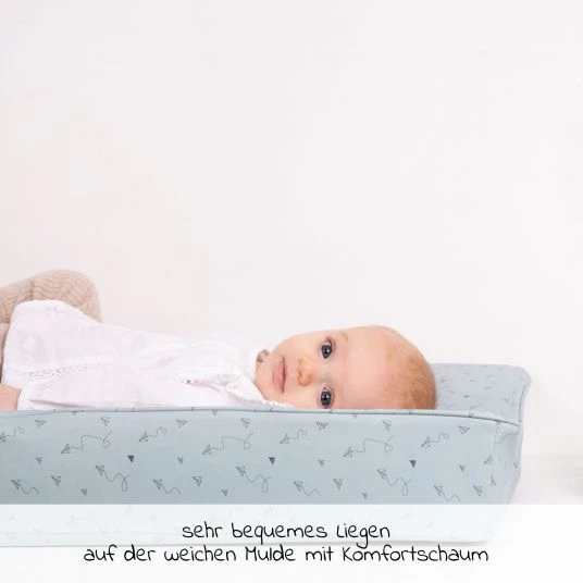 Besonders in den ersten Lebensmonaten Deines kleinen Schatzes verbringt ihr sehr viel Zeit mit Wickeln. Damit Dein Baby das entspannt genießen kann, sollte auch der Wickelplatz Wohlfühlatmosphäre vermitteln. Mit der bébé-jou Wickelmulde – Paper Planes wird er zu einem sicheren und bequemen Ort. Ausgestattet mit einer praktischen U-Form hat Dein Kleines eine sichere Begrenzung und kann nicht so leicht herunterrollen.