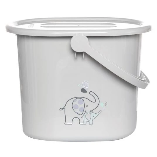 Der Windeleimer Ollie von bébé-jou ist mit seinem eleganten Grauton ein schöner Blickfang im Kinder- oder Badezimmer. Die Vorderseite des praktischen Eimers mit Deckel und komfortablem Griff, in welchem Du schnell und hygienisch die benutzten Windeln Deines Babys entsorgen kannst, wird von einem süßen Elefanten-Motiv geziert. Der Windeleimer hat ein extragroßes Fassungsvermögen von 13 Litern und lässt sich deshalb auch optimal zum Befüllen und Entleeren der Baby-Badewanne nutzen.
