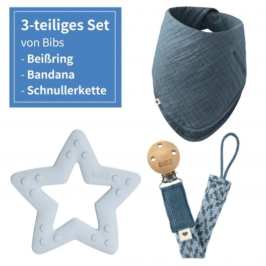 - Pflegehinweise: den Beißring mit mildem Seifenwasser reinigen, das Bandana ist maschinenwaschbar bei 40°C & trocknergeeignet