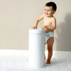 Der Windeleimer Diaper Champ Large in Silber fasst nicht nur bis zu 75 Windeln, er lässt sich auch einfach mit nur einer Hand bedienen, so dass Sie mit der anderen Hand Ihr Baby auf dem Wickeltisch absichern können.
