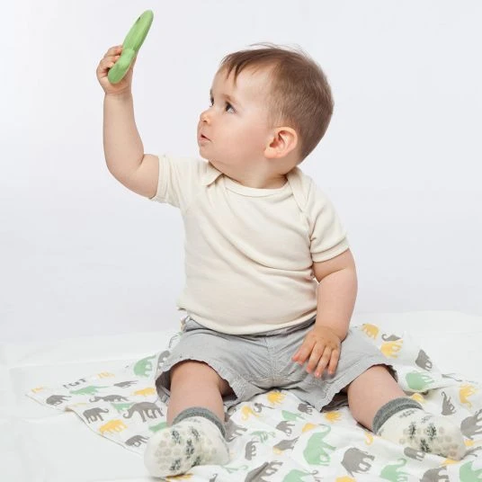 Babys entdecken die Welt mit Mund, Händen und Augen. Die natürliche Formgebung des Bio-Spieltiers – Schnecke von Grünspecht weckt die Neugier der Kleinen und lädt Babys Händchen zum Erkunden ein. So können spielerisch erste Erfahrungen mit verschiedenen Formen und Strukturen gemacht werden und der Greif- und Tastsinn wird ganz nebenbei trainiert. Das Spieltier eignet sich durch das Material auch ideal, um darauf herum zu kauen. Dadurch unterstützt es zahnende Babys beim natürlichen Zahnungsprozess.