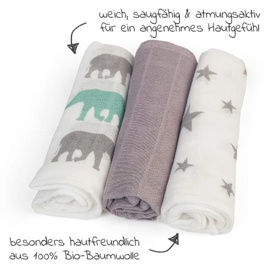 Die Tücher sind sehr pflegeleicht und lassen sich in der Maschine waschen. Da sie zügig trocknen, sind sie schnell wieder einsatzbereit. Dabei sparst Du nicht nur viel Geld für Wegwerf-Windeln, sondern schonst auch gleichzeitig die Umwelt.