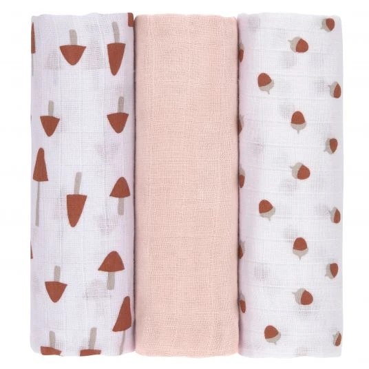 3 Lässig Mulltücher Swaddle & Burp Blanket L 85 x 85 cm – Little Forest – Rose