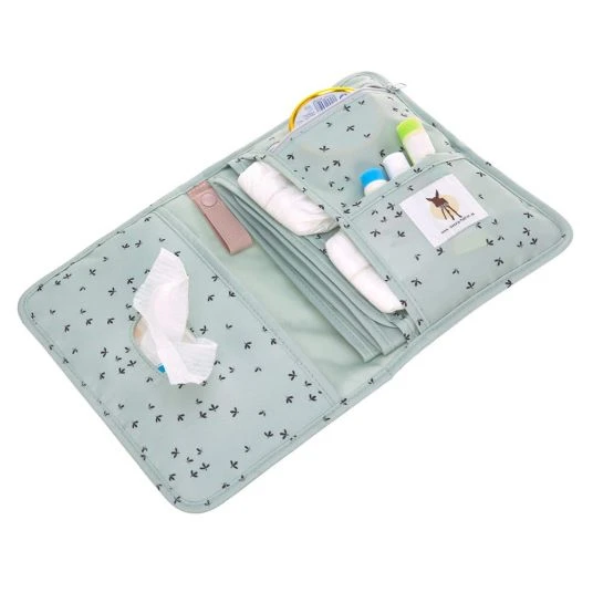 Rundum leicht und handlich: Die Changing Pouch bietet mit einem flexiblen, kontrastfarbenen Verschlussband eine praktische Handhabung und lässt sich durch ihr ideales Format überall mit hinnehmen. Eine funktionelle Ausstattung ermöglicht einen schnellen und unkomplizierten Windelwechsel. Ein Fach für Feuchttücher mit praktischer Entnahmeöffnung, verschiedene Steckfächer für Windeln & Co., ein Reißverschlussfach für allerhand Kleinigkeiten sowie ein Bändchen zur Befestigung eines Schnullers machen sie zum praktischen Accessoire. Eine wasserabweisende, weich wattierte und zum Täschchen farblich angepasste Wickelunterlage sorgt dafür, dass das Baby optimal gewickelt werden kann.