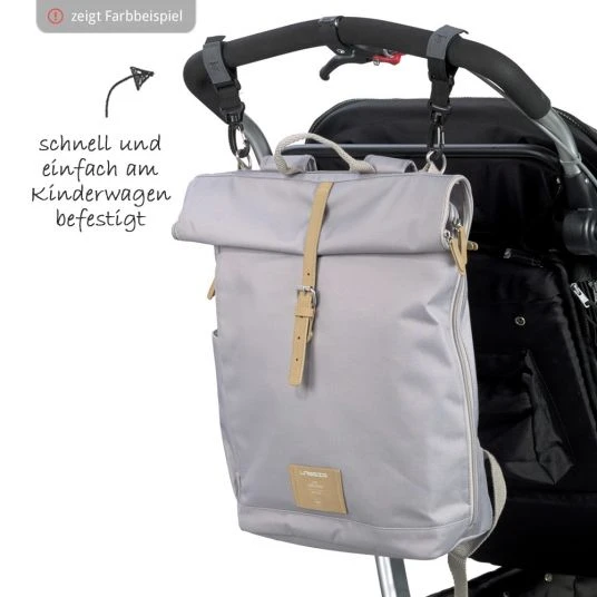 Schnellen Zugriff auf das Innenleben hat man durch den über die gesamte seitliche Länge vorhandenen Reißverschluss. Ein Feuchtfach vorne, Reißverschlussfach am Rücken sowie praktisches Zubehör machen ihn zum perfekten Accessoire für Eltern. Ausgestattet mit einer wasserabweisenden Wickelunterlage, einem isolierten Flaschenhalter, einer herausnehmbaren Gläschenhalterung, einer Kinderwagenbefestigung und einer kleinen Utensilientasche hat man alles, was man unterwegs so braucht. Mit vielen verschiedenen praktischen Fächern, von innen sowie außen zugänglich, lassen sich alle wichtigen Utensilien durchdacht verstauen.