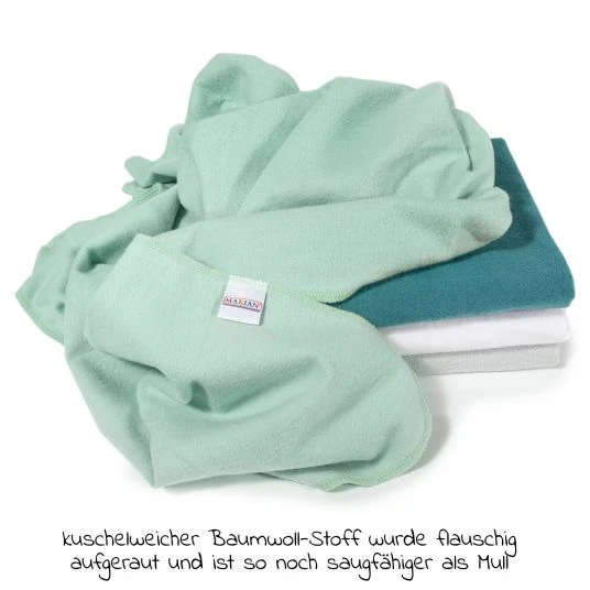 Mittlerweile ist die Auswahl an verschiedenen Windelarten sehr groß, die Mullwindeln bleiben dennoch sehr beliebt und weiterhin ein Klassiker. Mit den Makian Moltontuch/Moltonwindel 80 x 80 cm Patina / Mint im praktischen 4er Pack hast Du immer wunderbare Alltagshelfer für Zuhause und unterwegs dabei. Sie sind nicht nur als Windel verwendbar, sondern auch als Waschlappen, Spucktuch, Wickelunterlage oder nach der Windelzeit sogar als Putztuch ideal geeignet.