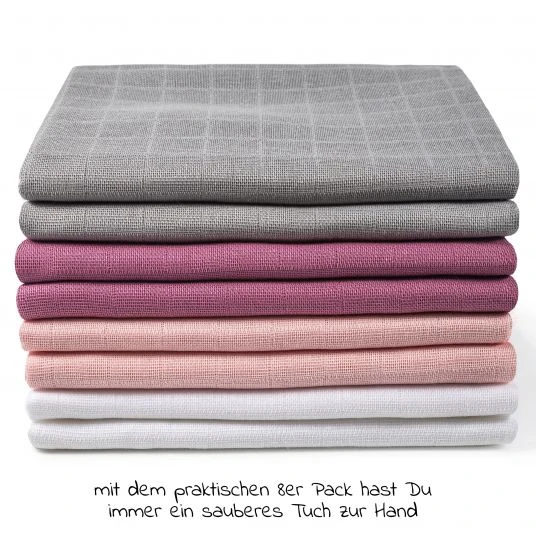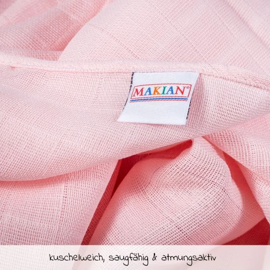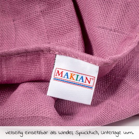 Mittlerweile ist die Auswahl an verschiedenen Windelarten sehr groß, die Mullwindeln bleiben dennoch sehr beliebt und weiterhin ein Klassiker. Mit den Makian Mullwindeln 80 x 80 cm im praktischen 8er Pack hast Du immer wunderbare Alltagshelfer für Zuhause und unterwegs dabei. Sie sind nicht nur als Windel verwendbar, sondern auch als Waschlappen, Spucktuch, Wickelunterlage oder nach der Windelzeit sogar als Putztuch ideal geeignet.