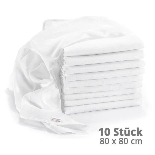 Makian Mullwindeln / Mulltücher / Spucktücher – 10er Pack 80 x 80 cm – Weiß