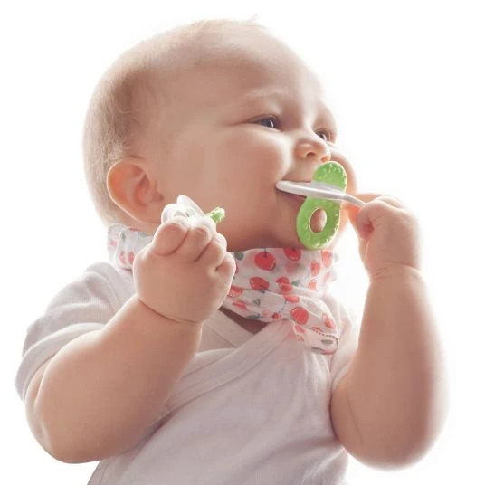 Der extra leichte Bite & Relax kann von kleinen Kinderhänden gut gehalten werden. Ein Schild verhindert, dass der Beißring zu tief in die Mundhöhle rutscht. Außerdem kannst Du eine Schnullerkette daran befestigen, so geht er auch unterwegs nicht verloren.