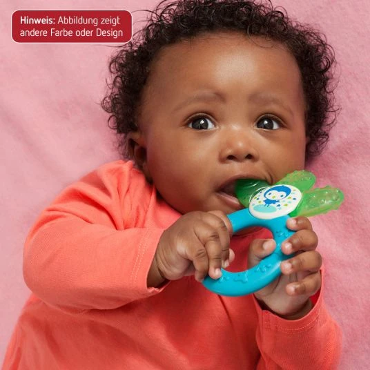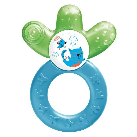Beißring vor und nach jeder Verwendung auf Abnutzung und Beschädigung überprüfen und bei Bedarf rechtzeitig ersetzen. Nicht sterilisieren oder auskochen und keine Mikrowelle verwenden. Zum Desinfizieren kurz beidseitig mit heißem Wasser abspülen. Der Beißring wurde speziell für Kinder von 0 – 3 Jahren entwickelt. Ältere Kinder oder Erwachsene könnten den wassergefüllten Teil aufbeißen. Die Wasserfüllung ist harmlos und wird regelmässig überprüft.