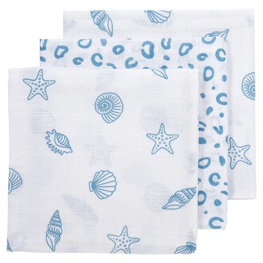 Mittlerweile ist die Auswahl an verschiedenen Windelarten sehr groß, die Mullwindeln bleiben dennoch sehr beliebt und weiterhin ein Klassiker. Mit den Meyco Mullwindeln im Design Shells Denim im praktischen 3er Pack mit einer Größe von jeweils 70 x 70 cm hast Du wunderbare Alltagshelfer. Sie sind nicht nur als Windel verwendbar, sondern auch als Waschlappen, Spucktuch, Wickelunterlage oder nach der Windelzeit sogar als Putztuch ideal geeignet.