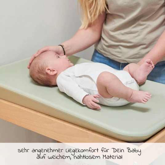 Fühlt sich Dein Kleines am Wickelplatz überhaupt nicht wohl, kann das Wickeln schon einmal zur Herausforderung werden. Auf der Nattou Wickelunterlage Softy in schönem Lindgrün hat es Dein Spatz besonders bequem. Bestehend aus super weichem PU liegen kleine Weltentdecker sehr komfortabel. Damit sich der Wirbelwind auch nicht so leicht von der Unterlage herunterrollen kann, bieten die erhöhten Ränder zusätzlichen Halt.