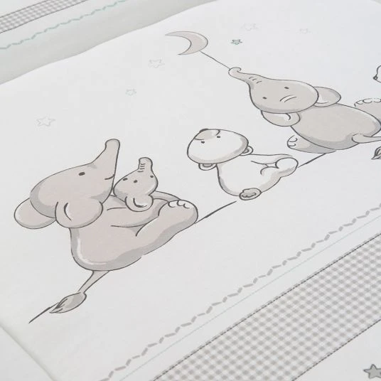 - sicheres Liegen während dem Wickeln mit erhöhtem, abgesteppten Rand