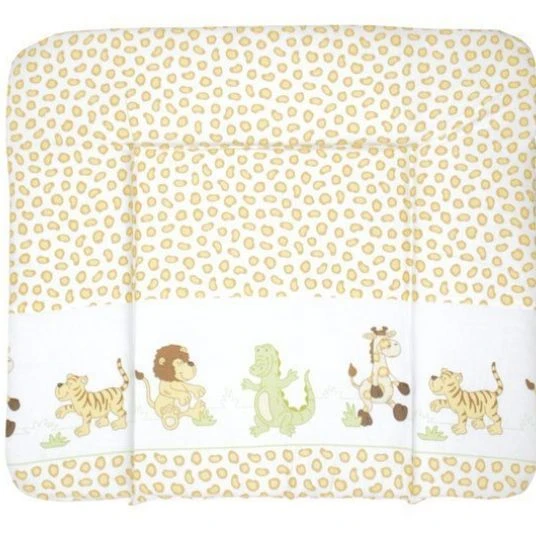 Auf der weichen Wickelauflage Soft – Safari von Roba wird sich Ihr Baby beim Ankleiden und Wickeln bestimmt besonders wohlfühlen. Die komfortable Unterlage ist mit Polyester-Vlies gefüllt und mit PU-beschichtetem Stoff überzogen. Sie ist mit niedlichen Motiven verziert und verfügt über einen erhöhten Rand an drei Seiten: So kann Ihr Nachwuchs sich nicht so leicht herumrollen und liegt sicherer. Dank der beschichteten Oberfläche ist die Wickelunterlage schnell und einfach mit einem feuchten Tuch gereinigt und so im Handumdrehen wieder einsatzbereit.