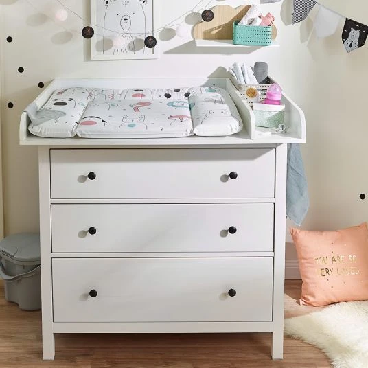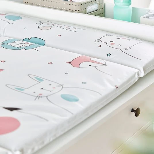 Die Folien-Wickelauflage – Happy Faces von Rotho Babydesign ist wunderschön und gleichzeitig pflegeleicht. Da die Auflage wasserabweisend ist, kann sie nach jedem Wickelvorgang mit warmem Seifenwasser abgewischt werden. Zudem ist sie hautfreundlich und angenehm weich gepolstert, damit Dein Baby beim Windelwechsel besonders bequem liegt. Die zusätzliche Steppkante sorgt für noch mehr Komfort.
