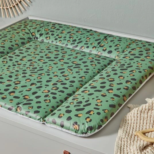 Das schöne Design stylischem Leo-Muster lässt Deinen Wickeltisch schnell zu einem bezaubernden Hingucker im Babyzimmer werden. Durch die robuste, pflegeleichte Oberfläche bleibt das Vlies im Inneren immer hygienisch sauber und trocken. Sollte während dem Wickeln ein Malheur passieren, lässt sich die Folie der Auflage einfach mit einem feuchten Tuch abwischen.