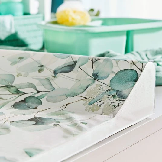 Platzsparende und hübsche Folien-Wickelmulde 2-Keil in der Limited Edition – Natural Leaves von Rotho Babydesign. Die Oberfläche aus abwischbarer, phthalatfreier Folie kannst Du leicht und schnell mit einem feuchten Tuch reinigen. Dabei ist die Oberfläche wasserabweisend, weich und hautfreundlich. Auf der Wickelmulde mit 2-seitigem Keil liegt Dein Baby besonders sicher und bequem. So wird ein seitliches Hinabrollen sanft verhindert. Dank der pflegeleichten und strapazierfähigen Folie bleibt das Innere immer hygienisch sauber und trocken. Die zarte Farbgebung passt zu jedem Möbelstück. Für eine besonders schöne und elegante Optik sorgt der hochwertige Druck.
