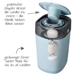 Der stabile Windeleimer Bella Bambina im Design Modern Elephants von Rotho Babydesign ist ein schöner Blickfang im Kinder- oder Badezimmer. Die Vorderseite des praktischen Eimers ziert ein süßer Druck von 2 Elefanten. Der Windeleimer hat einen losen Deckel, der den Eimer dicht verschließt und einen Tragegriff. Das Fassungsvermögen beträgt 10 Liter und durch den hochwertigen Kunststoff ist der Artikel besonders langlebig.