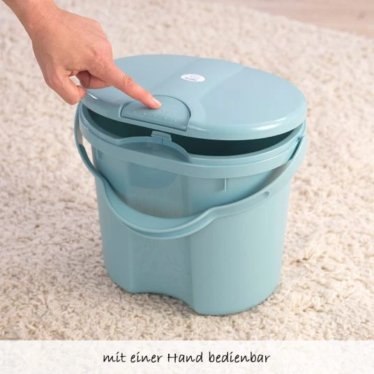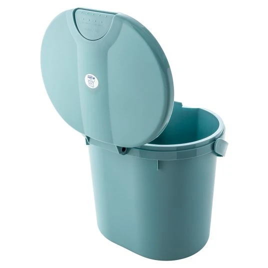 Beim Wickeln sicherst Du Dein Baby immer mit einer Hand ab und hast so nur eine Hand frei um die Windel zu entsorgen. Mit dem Windeleimer Top in Lagoon von Rotho Babydesign ist das kein Problem. Der Deckel klappt durch Antippen fast von selbst auf. Mit einem Fassungsvermögen von 10 Litern finden im Inneren viele benutzte Windeln Platz. An dem gebogenen Tragegriff kannst Du ihn einfach anheben und bequem entleeren.