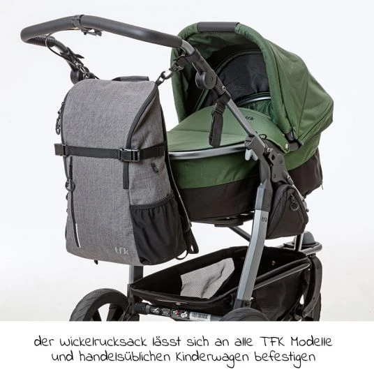 Es muss nicht immer eine klassische Wickeltasche sein: Wer beide Hände unterwegs frei haben und dennoch alles Wichtige zum Wickeln dabei haben möchte, findet im Wickelrucksack – Grau von TFK den idealen Begleiter. Der Rucksack entstand in Zusammenarbeit mit der Firma Lässig.
