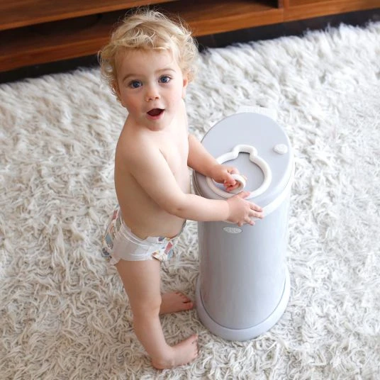Der Windeleimer in Grau von Ubbi ist einfach zu bedienen und günstig im Unterhalt. So geruchssicher wie er ist, so schnell ist auch schon die benutzte Windel in dem Eimer verschwunden. Man kann ihn mit nahezu jeder Art von Mülltüte (ca. 50 Liter) benutzen und ist somit nicht aufgeschmissen, falls die Originale vom Hersteller überraschend zu Hause ausgehen sollten. Dazu eine Tüte einfach durch die runde Aufhängung drücken und die Enden umstülpen. Fertig! Der Eimer selbst ist aus pulverbeschichtetem Stahl und hat geruchssichere Gummidichtungen. Trotz seiner stabilen Bauweise ist der Eimer leicht und kann schnell wo anders platziert werden. Der Beutelhalter ist so designet, dass es kaum zu Rissen in Beuteln kommen kann. Auf dem Deckel ist eine Kindersicherung angebracht, sodass sich Dein Kleines nicht aus Versehen die Finger einklemmt.